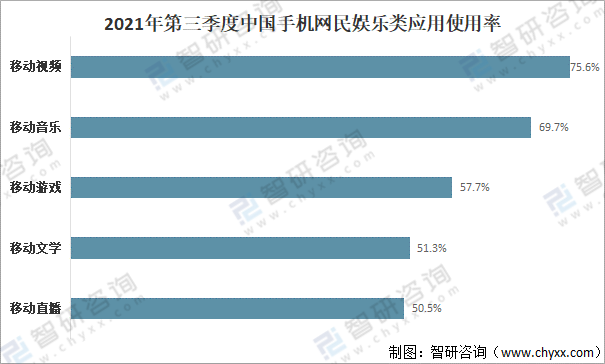 2021年第三季度中國手機網(wǎng)民娛樂類應(yīng)用使用率