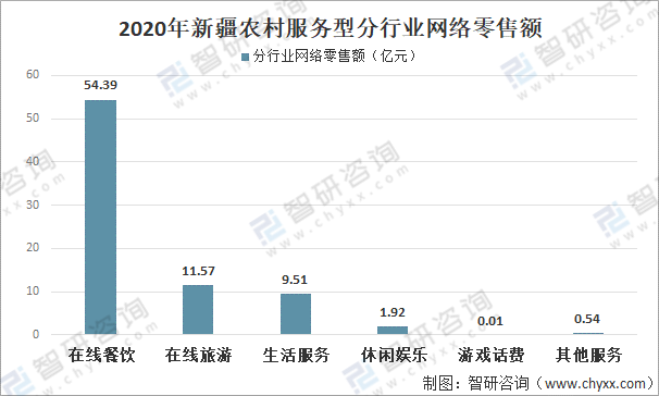 2020年新疆農(nóng)村服務(wù)型分行業(yè)網(wǎng)絡(luò)零售額