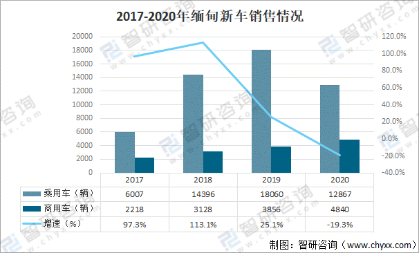 2017-2020年緬甸新車銷售情況