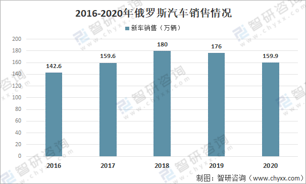 2016-2020年俄羅斯汽車銷售情況