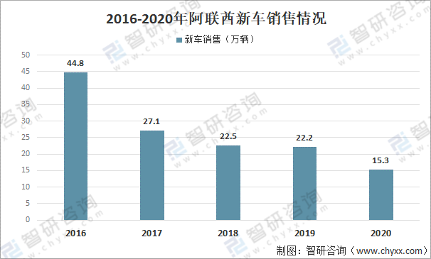 2016-2020年阿聯(lián)酋新車銷售情況