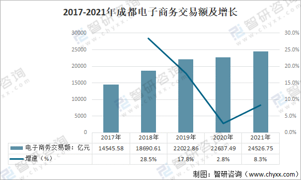 2009年以來,成都市委、市政府高度重視電子商務發展,把電子商務作為促進經濟發展方式轉變、提升城市核心競爭力的戰略選擇,全力推進成都電子商務發展。四川省電子商務大數據中心數據顯示,2020年成都累計實現電子商務交易額22637.49億元,同比增長2.79%2021年成都累計實現電子商務交易額24526.75億元,同比增長8.35%。