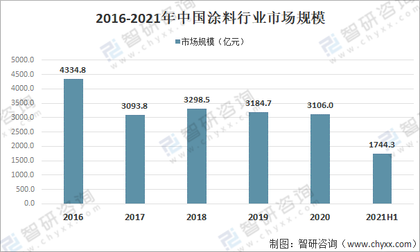 2016-2021年中國涂料行業市場規模