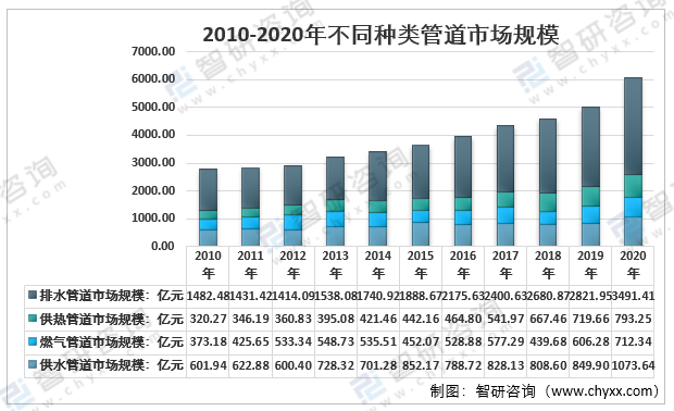 2010-2020年不同種類管道市場規模