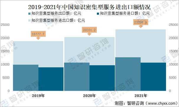 2019-2021年中國(guó)知識(shí)密集型服務(wù)進(jìn)出口額情況