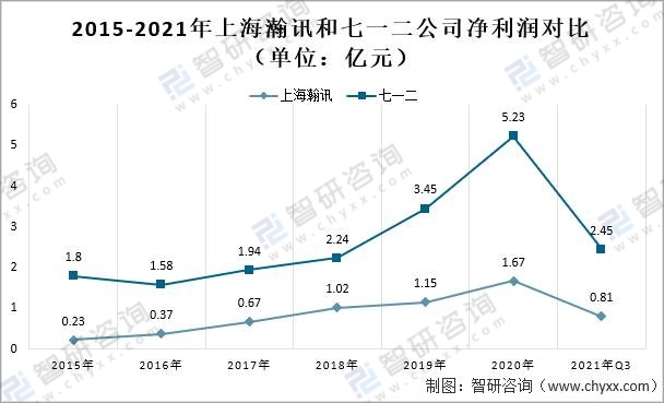 2015-2021年上海瀚訊和七一二公司凈利潤(rùn)對(duì)比(單位:億元)