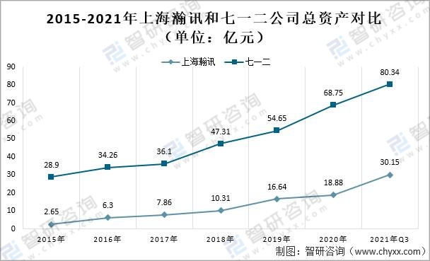 2015-2021年上海瀚訊和七一二公司總資產(chǎn)對(duì)比(單位:億元)