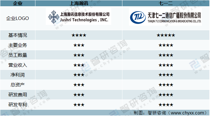 軍用通信重點(diǎn)企業(yè)基本情況對(duì)比