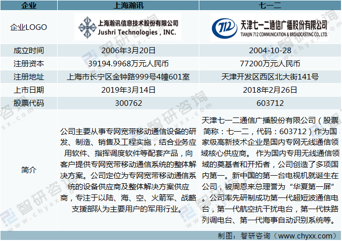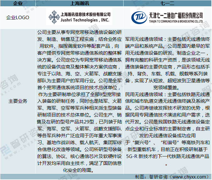 從主要業(yè)務(wù)看,上海瀚訊主要從事專(zhuān)網(wǎng)寬帶移動(dòng)通信設(shè)備的研發(fā)、制造、銷(xiāo)售及工程實(shí)施,結(jié)合業(yè)務(wù)應(yīng)用軟件、指揮調(diào)度軟件等配套產(chǎn)品,向客戶(hù)提供專(zhuān)網(wǎng)寬帶移動(dòng)通信系統(tǒng)的整體解決方案。公司定位為專(zhuān)網(wǎng)寬帶移動(dòng)通信系統(tǒng)的設(shè)備供應(yīng)商及整解決方案供應(yīng)商,專(zhuān)注于以陸、海、空、火箭軍、戰(zhàn)略支援部隊(duì)為主要用戶(hù)的軍用行業(yè)。七一二主要服務(wù)于國(guó)家及國(guó)防戰(zhàn)略,專(zhuān)注推進(jìn)我國(guó)專(zhuān)網(wǎng)無(wú)線(xiàn)通信行業(yè)發(fā)展,主營(yíng)業(yè)務(wù)包括軍用無(wú)線(xiàn)通信、民用無(wú)線(xiàn)通信等領(lǐng)域。其中,軍用無(wú)線(xiàn)通信領(lǐng)域:主要包括無(wú)線(xiàn)通信終端產(chǎn)品和系統(tǒng)產(chǎn)品。民用無(wú)線(xiàn)通信領(lǐng)域:主要包括鐵路無(wú)線(xiàn)通信和城市軌道交通無(wú)線(xiàn)通信終端及系統(tǒng)產(chǎn)品。