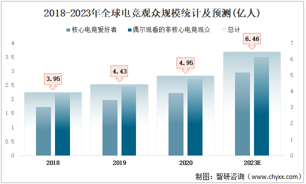 2018-2023年全球電競觀眾規(guī)模統(tǒng)計及預(yù)測