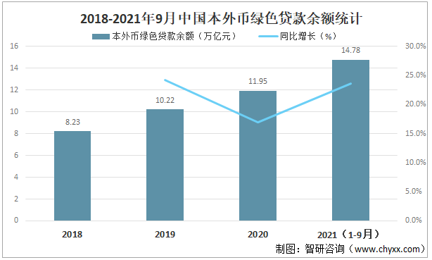 2018-2021年9月中國本外幣綠色貸款余額統計
