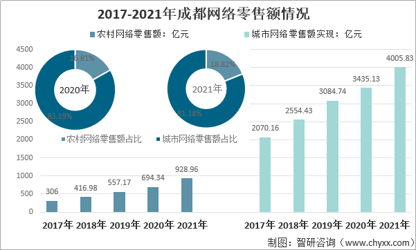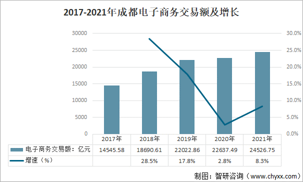 2017-2021年成都電子商務交易額及增長