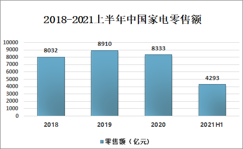 家用電器問世已有近百年歷史,美國被認為是家用電器的發祥地。家用電器的范圍,各國不盡相同,世界上尚未形成統一的家用電器分類法 ,有的國家將照明器具列為家用電器的一類,將聲像電器列入文娛器具,而文娛器具還包括電動電子玩具。 受新冠肺炎疫情的影響,當前家電產品需求萎縮、居民對家電的購買力下降、家電行業市場競爭加大。2021年中國家電零售額為8333億元,同比下降6.5%;2021年上半年中國家電市場加速回暖,零售額達4293億元,同比增長16.3%。2018-2021上半年中國家電零售額