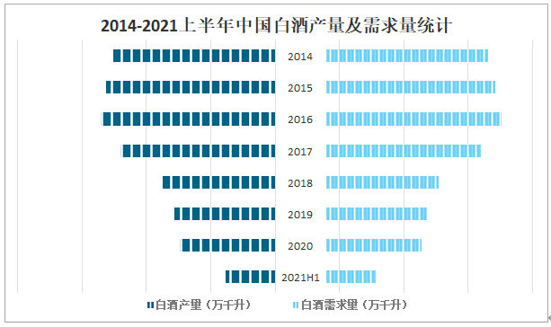 圖表:2016-2020年中國(guó)白酒行業(yè)供給規(guī)模分析