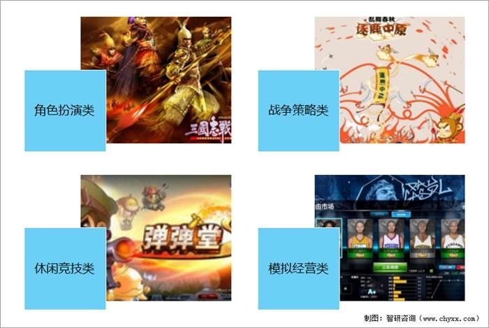 按照游戲內容可以分為角色扮演類、戰爭策略類、休閑競技類、模擬經營類四個大類。網頁游戲分類