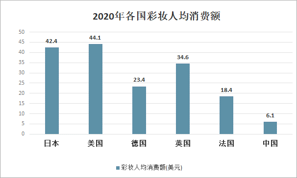 2020年各國彩妝人均消費額