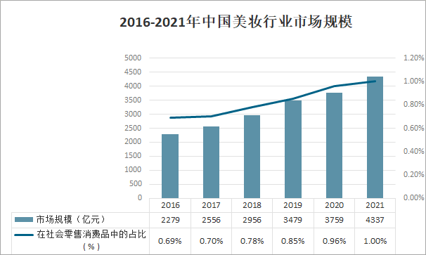 2016-2021年中國美妝行業市場規模