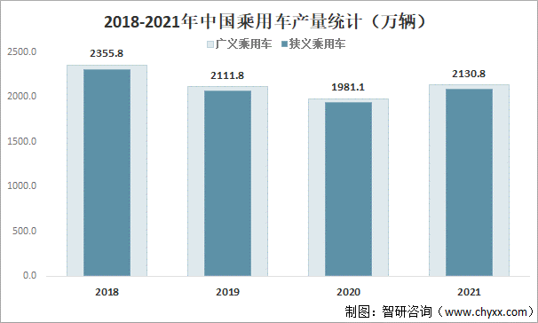2018-2021年中國(guó)乘用車產(chǎn)量統(tǒng)計(jì)(萬輛)