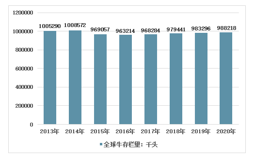 2020年全球牛出欄量為293571千頭。其中印度牛出欄量排在全球首位,達6940萬頭;其次是巴西,達5150萬頭。