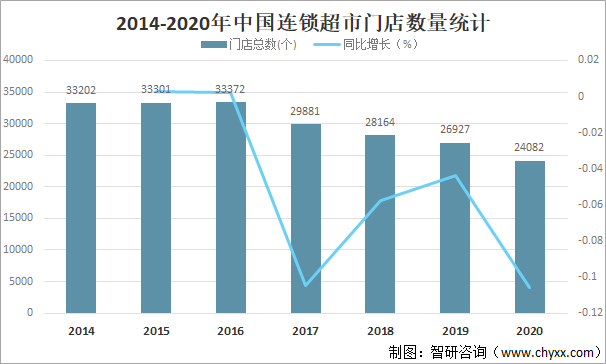 2014-2020年中國(guó)連鎖超市門(mén)店數(shù)量統(tǒng)計(jì)