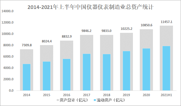 2014-2021年上半年中國儀器儀表制造業(yè)總資產(chǎn)統(tǒng)計