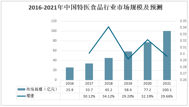 2016-2021年中國特醫食品行業市場規模及預測
