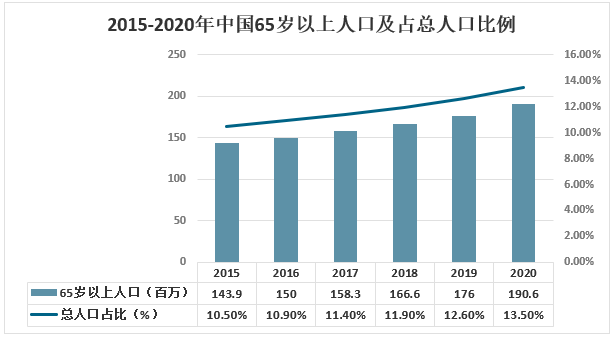 國家統計局數據顯示,2020年我國65歲以上人口為190.6百萬,占總人口的比例為13.5%。隨著老齡化問題加深,下游需求不斷加大及醫院營養科建設發展等因素驅動下,特醫食品憑借在臨床營養支持中不可替代的作用,有助于其市場規模將持續保持增長。