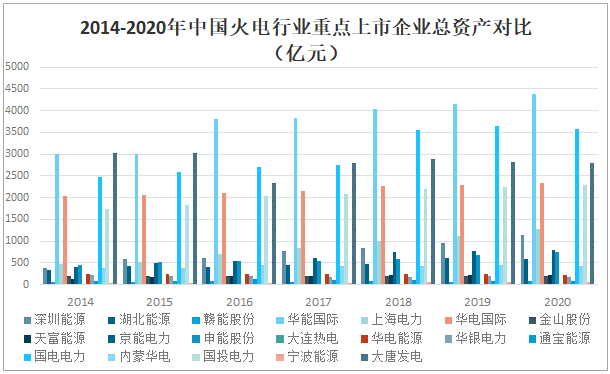 2014-2020年中國火電行業重點上市企業總資產對比(億元)