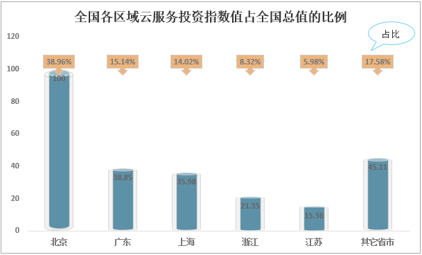 全國各區(qū)域云服務(wù)投資指數(shù)值占全國總值的比例