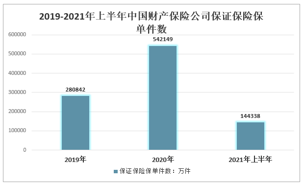 2019-2021年上半年中國(guó)財(cái)產(chǎn)保險(xiǎn)公司保證保險(xiǎn)保單件數(shù)