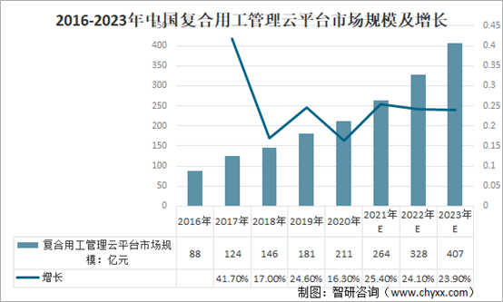 2016-2023年中國復合用工管理云平臺市場規模及增長