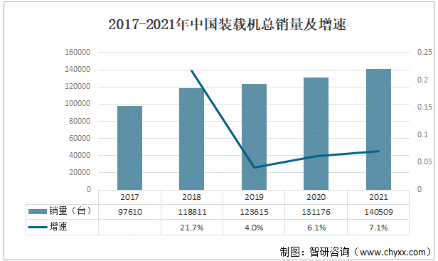 據中國工程機械工業協會數據,近五年裝載機銷量穩步提升,2021年中國裝載機總銷量為140509臺,同比增長7.1%。