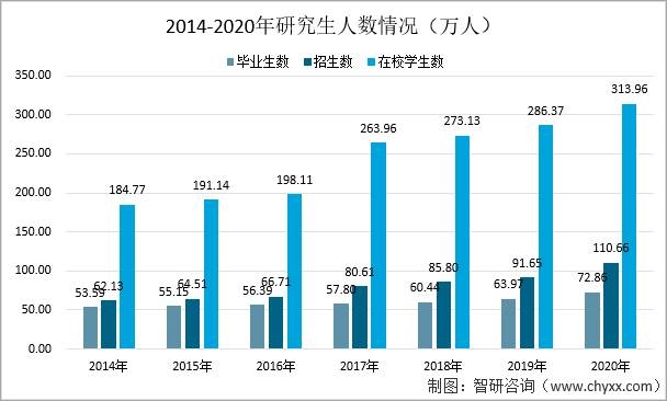 2014-2020年研究生人數情況(萬人)