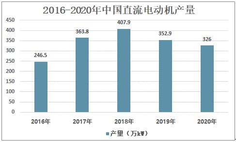 直流電動機在某些領域,被維護相對方便的交流調速電動機所取代,應用范圍呈縮減趨勢。根據中國電器工業協會中小型電機分會不完全統計:2019年中國直流電動機產量為352.9萬KW,2020年中國直流電動機產量約為326萬KW。