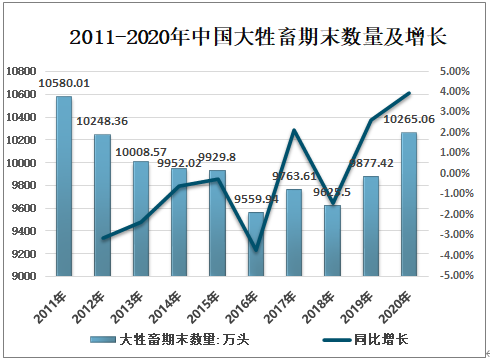 2011-2020年中國大牲畜期末數量及增長