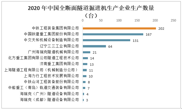 2020年中國全斷面隧道掘進機生產企業生產數量(臺)