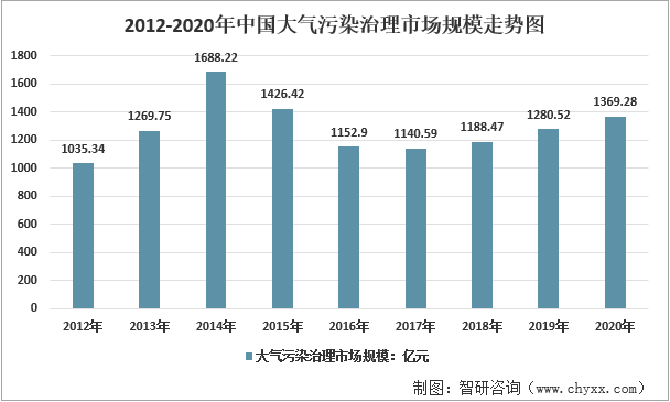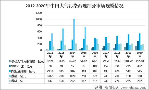 2012-2020年中國大氣污染治理細分市場規模情況