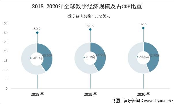 2018-2020年全球數字經濟規模及占比