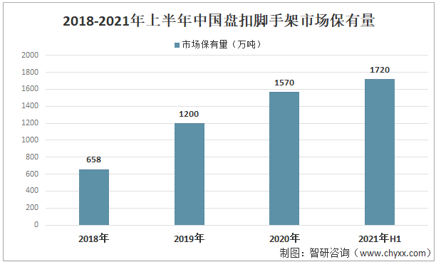 2018-2021年上半年中國盤扣腳手架市場保有量