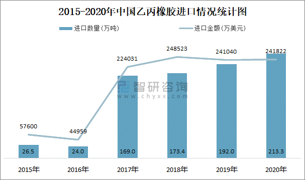 近一年中國乙丙橡膠進出口數(shù)量、金額統(tǒng)計表