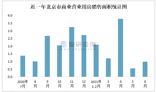 近一年北京市商業(yè)營業(yè)用房銷售面積統(tǒng)計圖