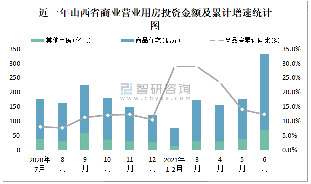 根據(jù)國家統(tǒng)計局數(shù)據(jù)統(tǒng)計可知:2021年6月山西省房地產(chǎn)開發(fā)投資商品房投資金額為331.12億元,其中包括辦公樓、商業(yè)營業(yè)用房等其他用房69.98億元(注:辦公樓、商業(yè)營業(yè)用房未分開統(tǒng)計);2021年1-6月山西省房地產(chǎn)開發(fā)投資包括商業(yè)營業(yè)用房在內(nèi)的其他用房累計金額為182.22億元。
