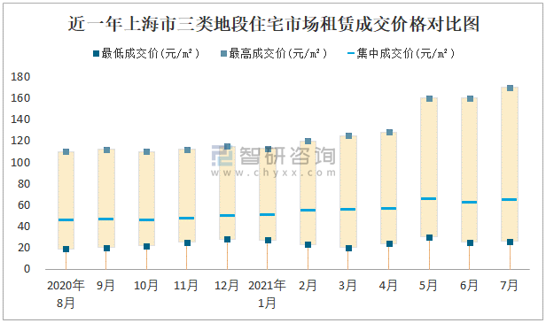 2021年7月上海市各類房屋租賃價格統(tǒng)計圖