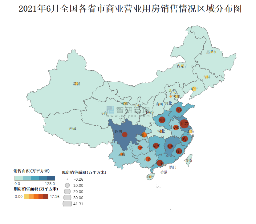 2021年6月全國各省市商業營業用房銷售情況區域分布圖