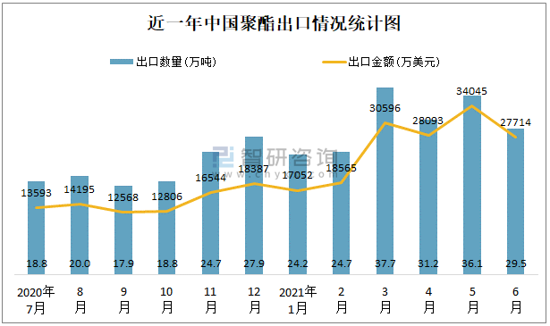 近一年中國聚酯出口情況統(tǒng)計(jì)圖