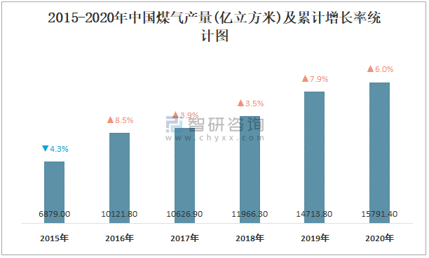 根據國家統計局數據顯示:2021年7月中國煤氣產量為1300億立方米,同比下降6.6%;2021年1-7月中國煤氣累計產量為9375.5億立方米,累計增長2.9%;2015-2020年中國煤氣產量逐年遞增,2020年達到最大。