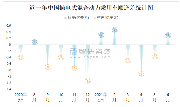 近一年中國插電式混合動(dòng)力乘用車順逆差統(tǒng)計(jì)圖
