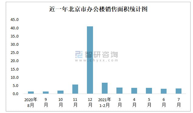 根據國家統計局數據可知:2021年7月北京市辦公樓銷售面積為3.36萬平方米;2021年1-7月北京市辦公樓累計銷售面積為24.34萬平方米,2021年7月四川、廣東、江蘇的辦公樓銷售面積最多,江蘇、上海、浙江、廣東的辦公樓現房銷售面積高于其他各省市。