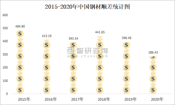 2015-2020年中國鋼材順差(億美元)統(tǒng)計圖