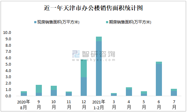 近一年天津市辦公樓銷售面積統(tǒng)計(jì)圖